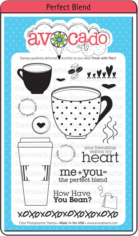 Remember last week I told you, this past march I was at the scrapbook expo in Pleasanton. I took a work shop from a woman named Michelle who owns Avocado Arts stamps. Wonderful whimsical stamps. "The perfect blend" was the stamp set I received for part of the class kit. I love it. When I got home I was able to order the cut file for the dies that match the stamps. I die cut every single stamped image and I have almost used everyone from the stamp set with these three cards.